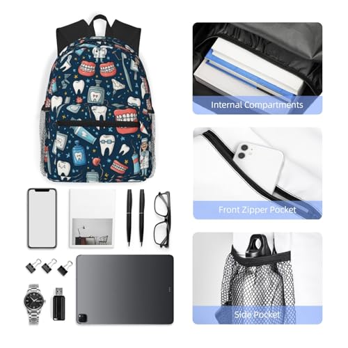 Large Capacity Anti-Theft Multipurpose Bookbag for College, Teeth Dental Dentist Bags, Travel Hiking Camping Rucksack Daypack Backpack with Side Pockets 6