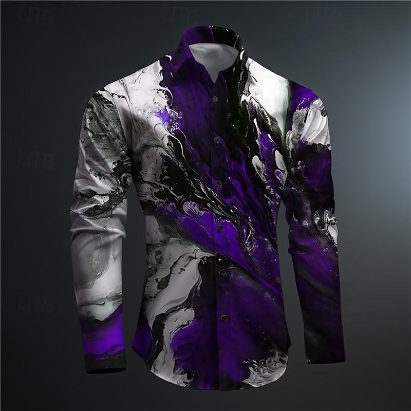 HOT ! Men's Optical Illusion Button Up Shirt Printed Shirts Long Sleeve Subcultural Vacation Party Street Spring & Summer Turndown Print Button-Down Red Blue Purple Green