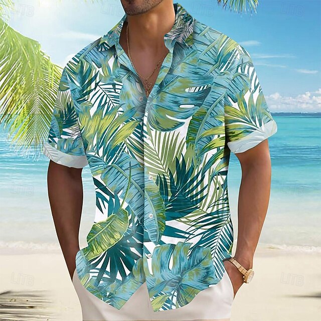 Why Choose Men's Palm Leaf Tropical Plants Shirt Summer Hawaiian Shirt Button Up Shirt Short Sleeve Hawaiian Resort Vacation Holiday Beach Wear Summer Spring Turndown 3D Print Collared Shirts White Blue?