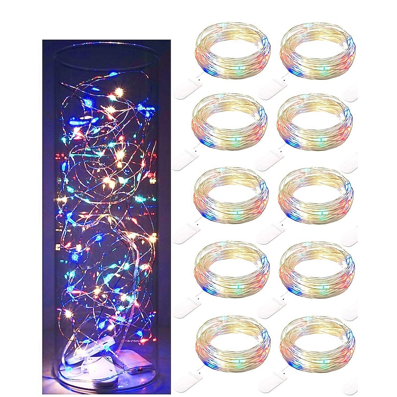 Elegant Wedding Reception Party 10Packs LED Fairy String Lights 1M 10LEDs Silver Copper Wire Light for Wedding Bedroom Decoration Party Holiday Gift 11