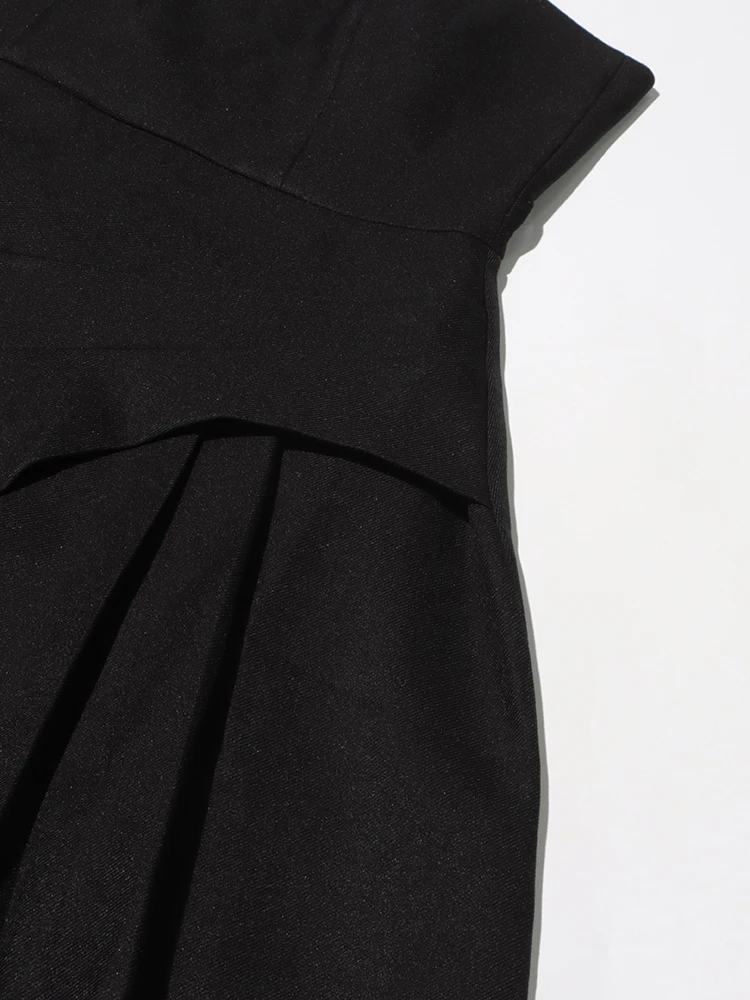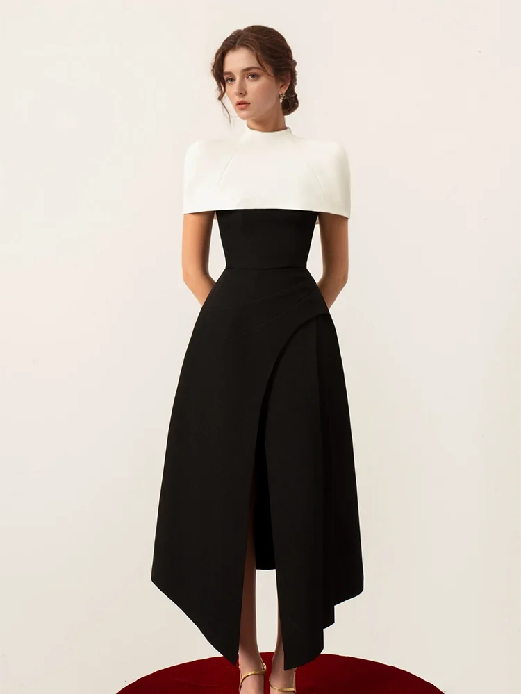 Excellent TWOTWINSTYLE Detachable Cloak Elegant Dresses For Women Square Collar Sleeveless High Waist Hit Color Split Dress Female Fashion!