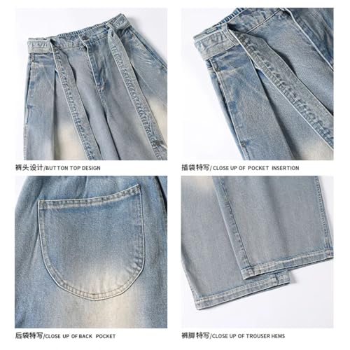 • Material: denim with distressed, washed finish. Durable fabric suitable for everyday wear. Ideal for casual, streetwear, and hip-hop styles. Comfortable and breathable for all-day wear.