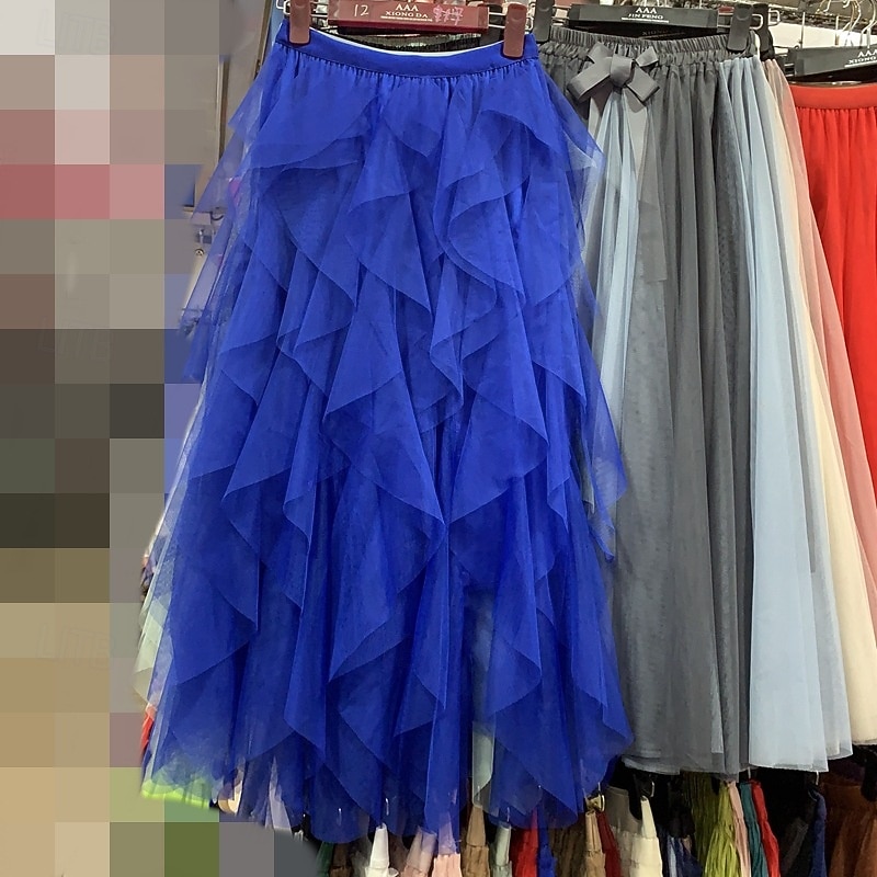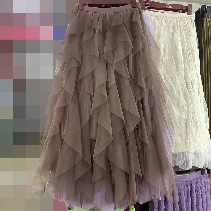 More information about Women's Skirt Swing Gauze Skirts Fashion Casual Maxi Mid Rise Skirts Solid Colored Irregular Hem Micro-elastic Vacation Street Apricot Black White Pink Spring Polyester