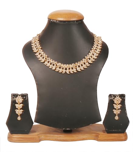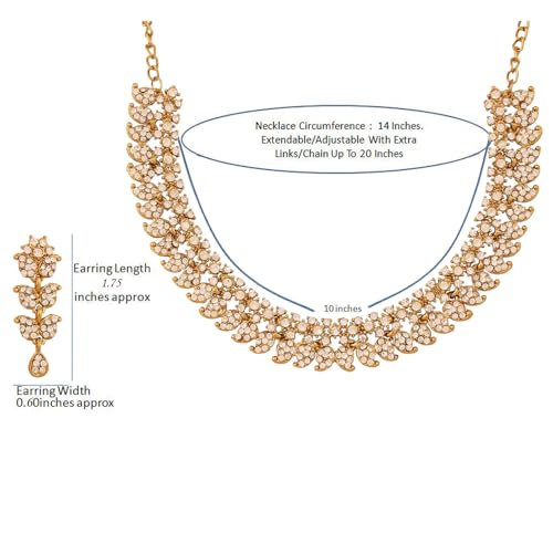 • Touchstone Indian Bollywood Desire Beautifully Handcrafted Traditional Paisley Inspired Rhinestones Embellished Designer Jewelry Necklace Set In Antique Gold Tone For Women. Specifications: Necklace Circumference 14 Inches. Extendable/Adjustable With Extra Links/Chain Up To 20 Inches. Earring Weight (Single) 7 Gms. Earring Length 1.75 Inches. Earring Width 0.60 Inch.