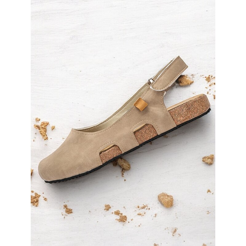 Women's Vintage-Style Beige Suede Slingback Sandals with Cut-Out Design and Cork Sole - Comfortable and Stylish for Summer Wear 1