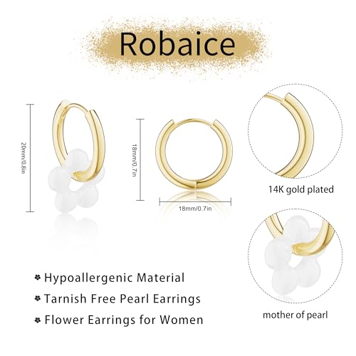 Gold Pearl Earrings For Women, 14K Gold Plated Pearl Drop Dangle Huggie Hoop Flower Earrings, Hypoallergenic Dainty Gold Earrings for Women Trendy Wedding Brides Jewelry Gifts 5