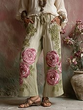 More information about Women's Pants Trousers Straight Vacation Vintage Ethnic Style Full Length Mid Waist Floral Pocket Elastic Waist Print Comfy Breathability Micro-elastic Outdoor Vacation Street Green Summer Spring Fall
