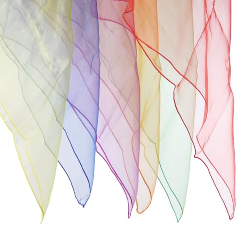 • 24PCS play scarves for kids.6 bright color including blue,red,purple,green,orange and yellow,4PCS for each color,24pcs in total