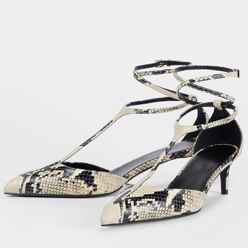 More information about Arqa Women's T-strap Pumps Ribbon Bands Loop Ankle with Gold Buckle Pointed Toe Kitten Heel Sandals Elegant Wedding Party Dressy Low Heels