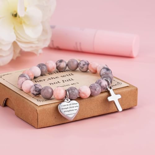 Inspirational Gifts Bracelets for Women Cross Bracelets with Natural Stone Christian Bible Verse Bracelet Prayer Faith Religious Jewelry 5