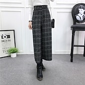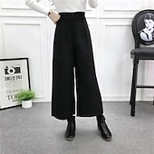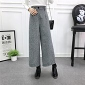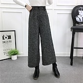 More information about Women's Wide Leg Chinos Straight Vacation Vintage Streetwear Ankle-Length Medium Waist Plain Elastic Waist Buckle Comfortable Inelastic Micro-elastic Outdoor Street Daily Black Grey Light Gray