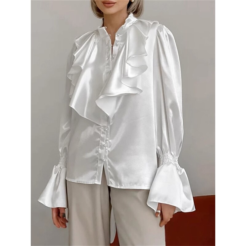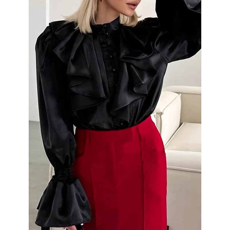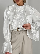 More information about Women's Shirt Elegant Dressy Satin Solid Color Elegant Vintage Stylish Long Sleeve High Neck Vacation Party Work Ruffle Black White Spring Fall