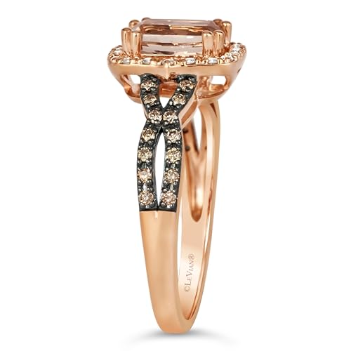 LE VIAN 1/4 Carat White and Chocolate Diamond Halo Ring for Women with 2/3 Carat Cushion Cut Champagne Morganite | 14k Rose Gold Ring for Her (White, Brown, 0.27 cttw) Promise Wedding Band Size 6