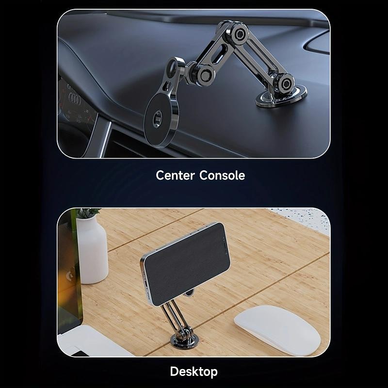 Folding Alloy Magnetic Car Mount 360 Rotating Adjustable Magnetic Car Phone Holder Universal Phone Stand For IPhone 15/14/13/12 Series & Magsafe Phone Case 4