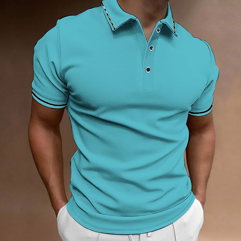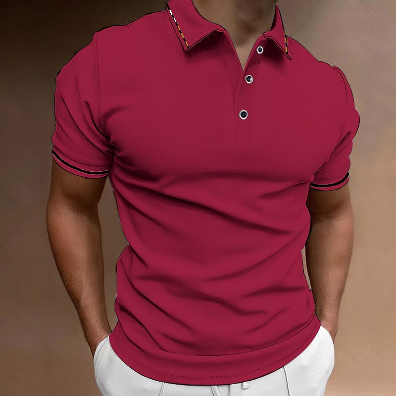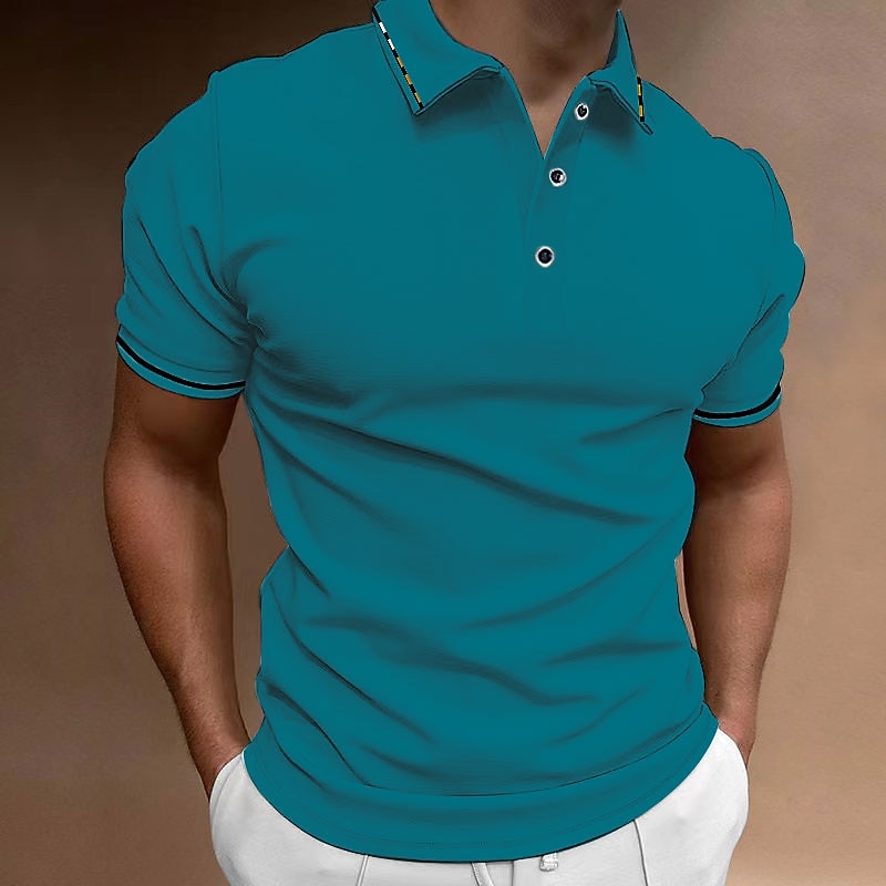 More information about Men's Button Up Polos Golf Shirt Casual Sports Ribbed Polo Collar Classic Short Sleeve Fashion Basic Plain Button Summer Regular Fit Wine Lake Blue Black White Pink Navy Blue Button Up Polos