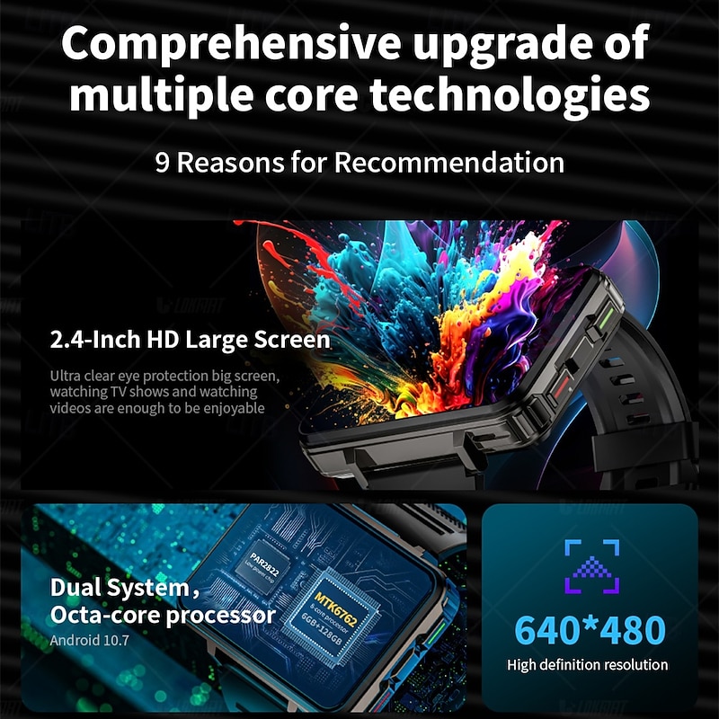 LOKMAT APPLLP 5 MAX Smart Watch 2.4 inch 4G LTE Cellular Smartwatch Phone 3G 4G Bluetooth Pedometer Call Reminder Sleep Tracker Compatible with Android iOS Women Men GPS Long Standby Hands-Free Calls 9