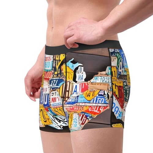 More information about License Plate Map Print Men'S Boxer Briefs Breathable Underwear With Elastic Waistband