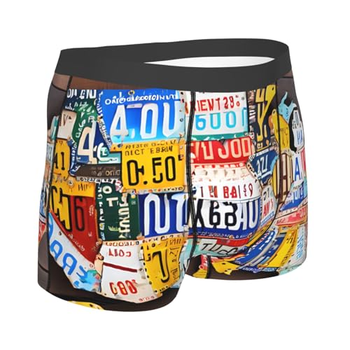 HOT ! License Plate Map Print Men'S Boxer Briefs Breathable Underwear With Elastic Waistband