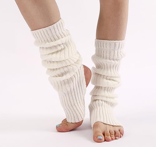 Long Leg Warmers Neon Ribbed Knit Leg Warmers for 80s Party Sports Dance Yoga(White) 7