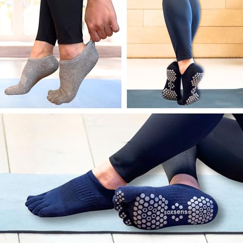 Soxsense Pilates Grip Toe Socks for Women & Men, Cushioned Low-Cut Five Finger Socks Non Slip for Yoga, Barre, Gym 4