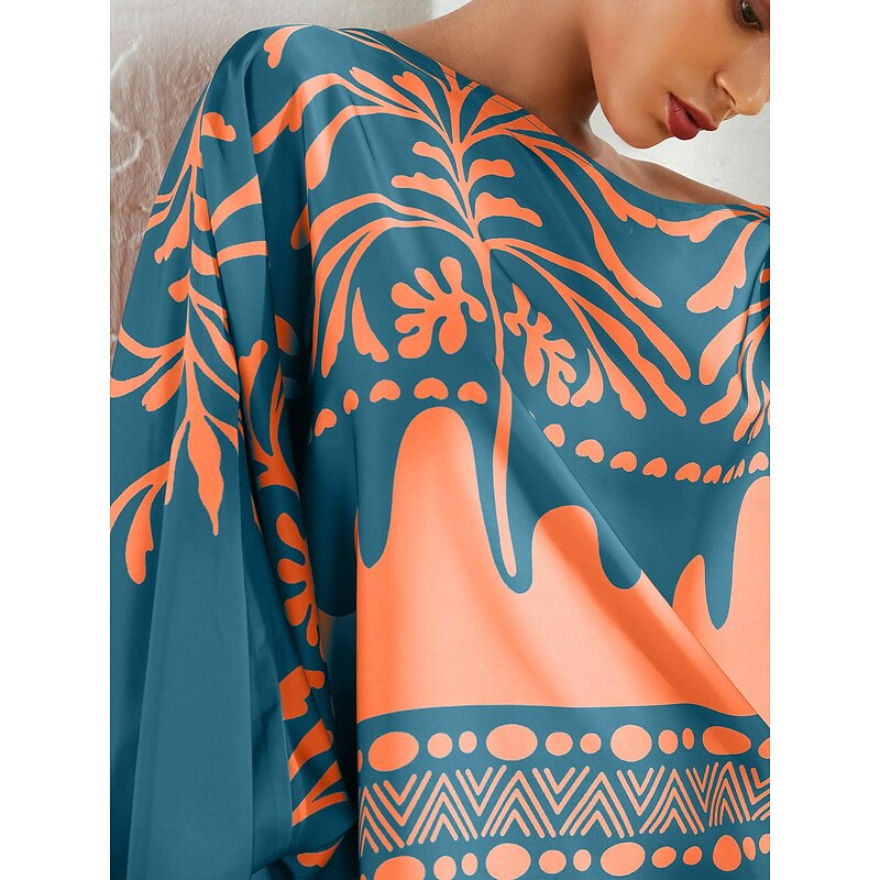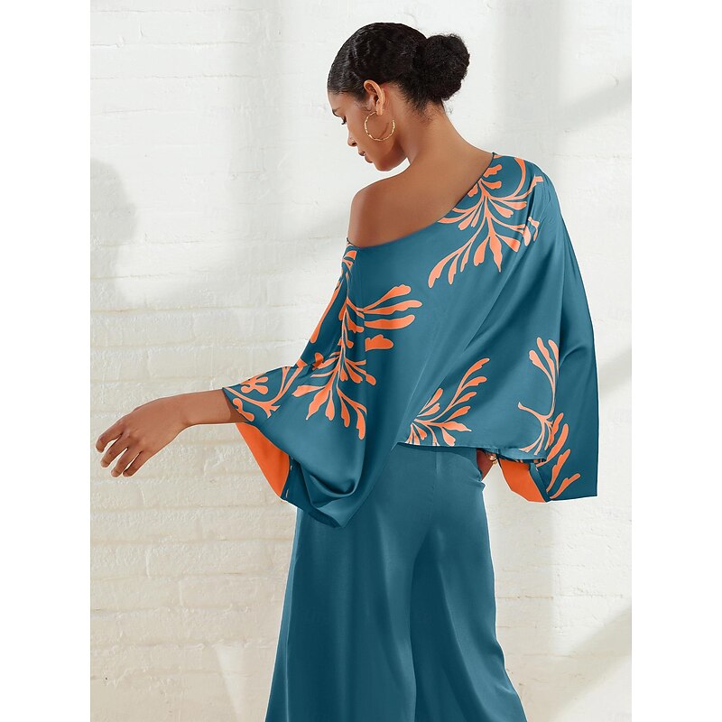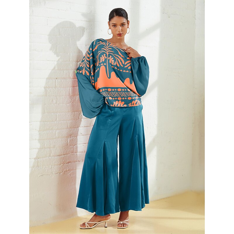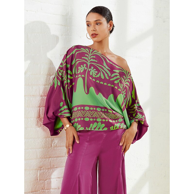 HOT ! Satin Geometrical Floral Puff Sleeve Shirt