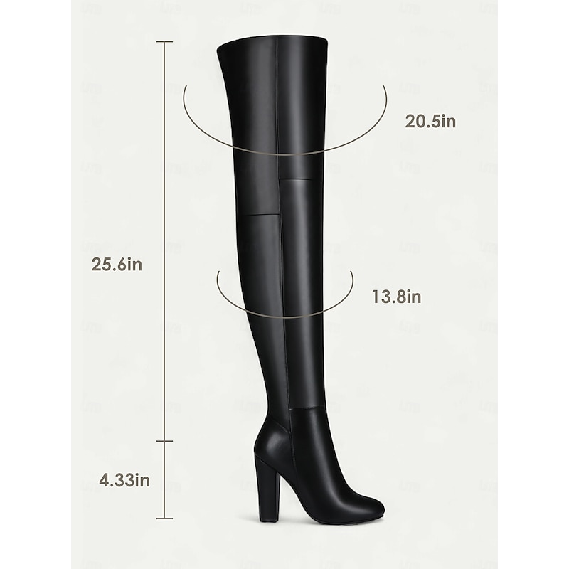 Women's Black Faux Leather Over-the-Knee Boots - High Block Heel, Side Zipper, Chic Street Style Winter Footwear for Daily, Nights Out and Fashion Events 8