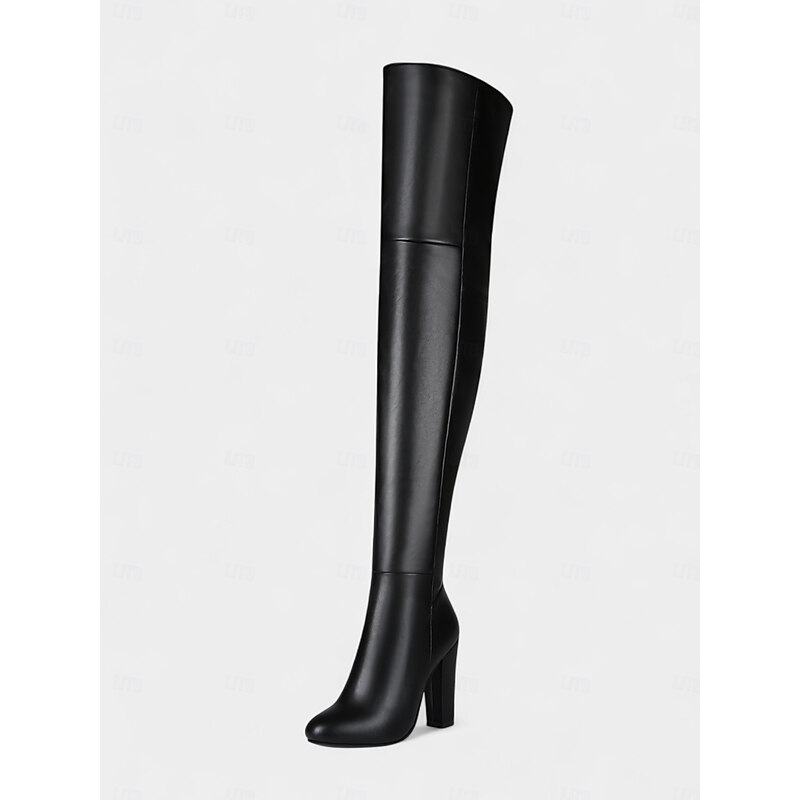 Women's Black Faux Leather Over-the-Knee Boots - High Block Heel, Side Zipper, Chic Street Style Winter Footwear for Daily, Nights Out and Fashion Events 6