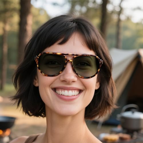Aviator Sunglasses for Women Lightweight Resin Frame with PC Lenses for UV Protection and Outdoor Use, Dark Brown 4