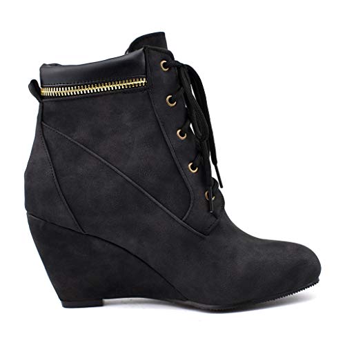 • ➤FINEST QUALITY & COMFORTABLE】: Womens Ladies Fashion Round Toe Winter Wedge Dressy Ankle Boots Shoes, Lace up Easy On/Off; Anti-slip Pull On Platform Wedge Lightweight, High Strength, Good Fexibility, Finished with Lightly Cushioned for All Day Comfy and Eco-Friendly Design. Instep ventilation pores for your comfort.