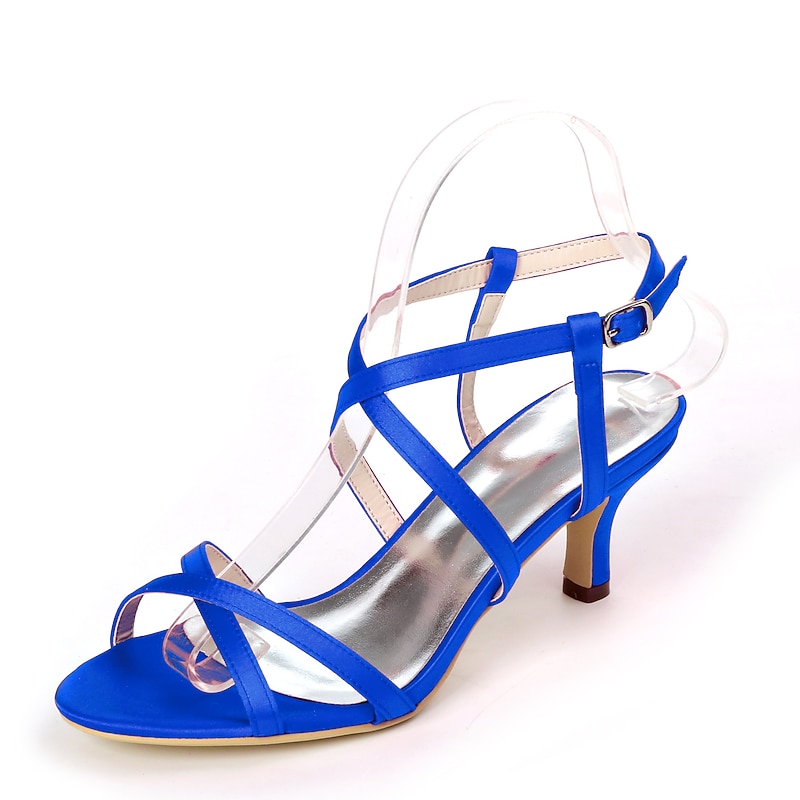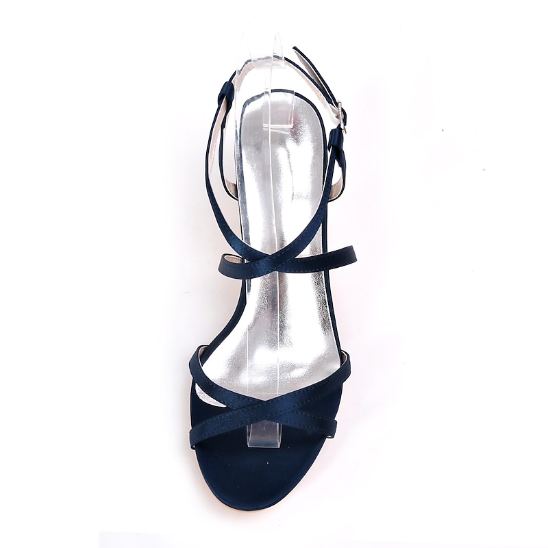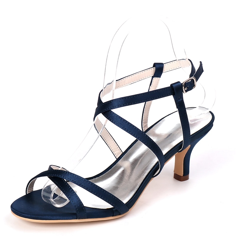 More information about Wedding Shoes for Bride Bridesmaid Women Peep Toe White Ivory Blue Silver Gold Black Satin Sandals Low Heel Wedding Party Valentine's Day Minimalism Fashion