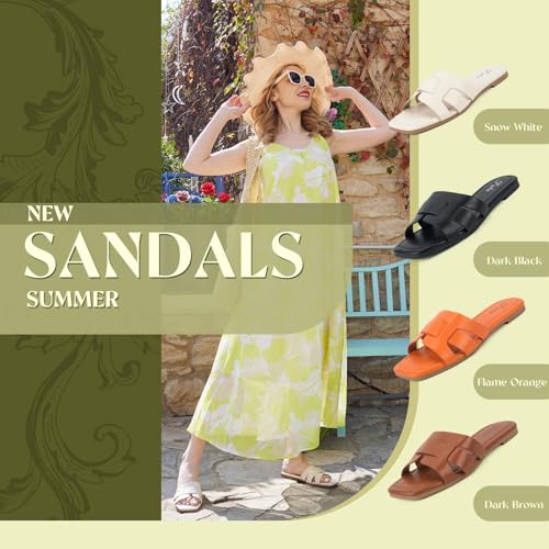 Putu Women's Flat Sandals Dressy Summer Sandals Strappy Slides with Square Open Toe 6