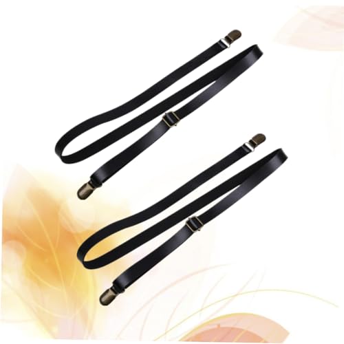 FRCOLOR 2Pcs Adjustable Elastic Braces Pants Straps for Non Slip PU Leather Trousers Suspenders with Strong Clips for Boys and Durable Design 2