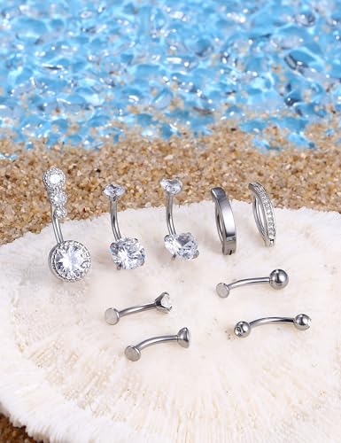 • Belly Button Ring Pack--Come with 9pcs different style belly button rings, including cz floating belly button ring, opal belly rings, simple ball belly ring, cz belly rings piercings, clicker belly ring etc. More belly pierecings choices for everyday wear