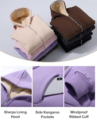 Unisex Boys Girls Sherpa Lined Fleece Jacket Hoodie Kids Warm Winter Zip Up Hooded Sweatshirt Jackets Coat 5-15Y 2