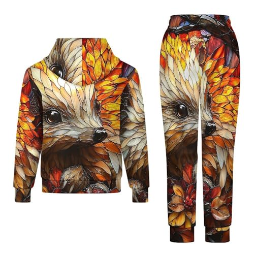 HOT ! Boys Girls 2 Piece Sets Hoodie and Pants Sweatshirt Set 2 Pieces for Kids, Hedgehog Stained Glass Art