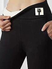 More information about Women's Slacks Leggings Cozy Fleece Lined Streetwear Casual Full Length Natural Plain Elastic Waist Comfortable Street Daily Wear Weekend Black Winter Regular Fit