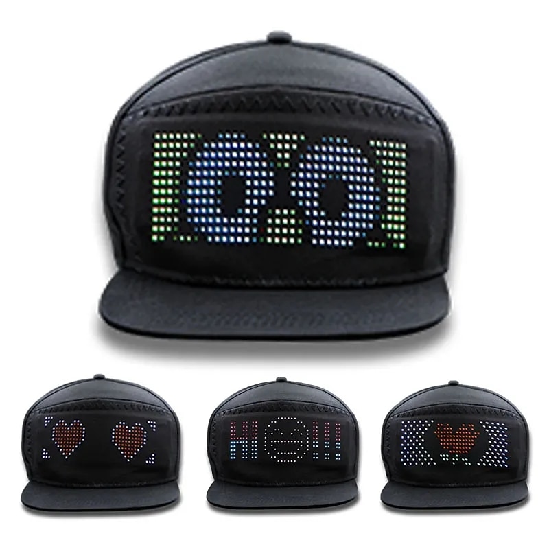 Programmable Creative RGB LED Hat Bluetooth Shining Caps Mobile APP Control Editing Words Hip Hop Electronic Prop For Halloween 7