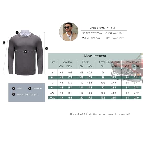 Men's Knitted Crewneck Sweater - Long Sleeve Lightweight Pullover Jumper for Casual and Dress Wear, Fall Knit Sweater 6