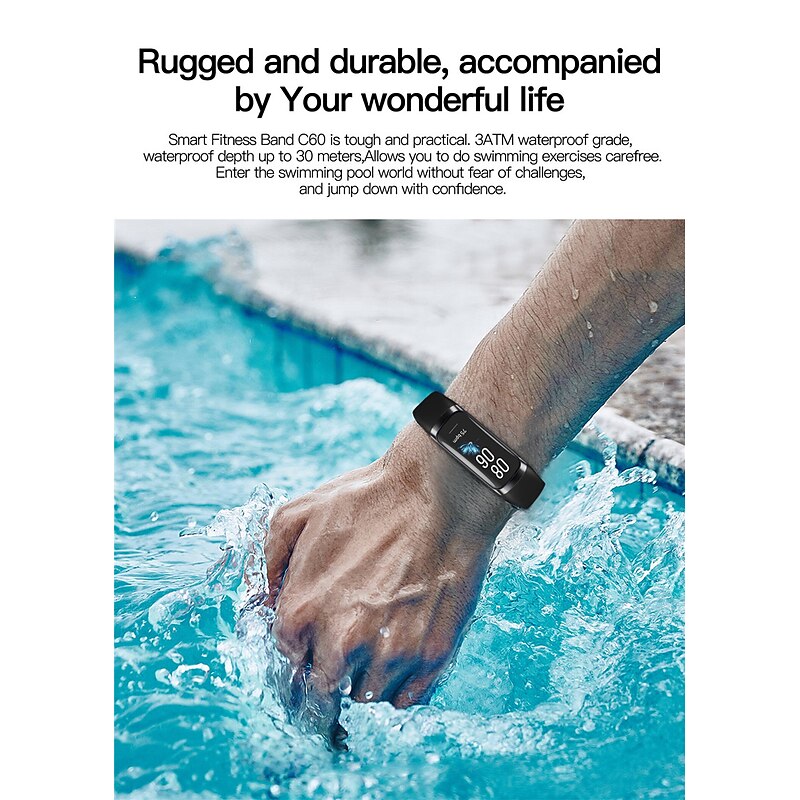 C60 Smart Watch 1.1 inch Smartwatch Fitness Running Watch Bluetooth Pedometer Sleep Tracker Heart Rate Monitor Compatible with Android iOS Women Men Long Standby Step Tracker IP 67 43mm Watch Case 11