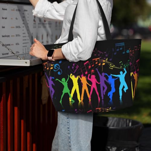 • Full-Width Print: Created With An All-Over Print Design, This Dance With Music Print Tote Bag Adds A Touch Of Style To Your Travel And Beach Outfit.