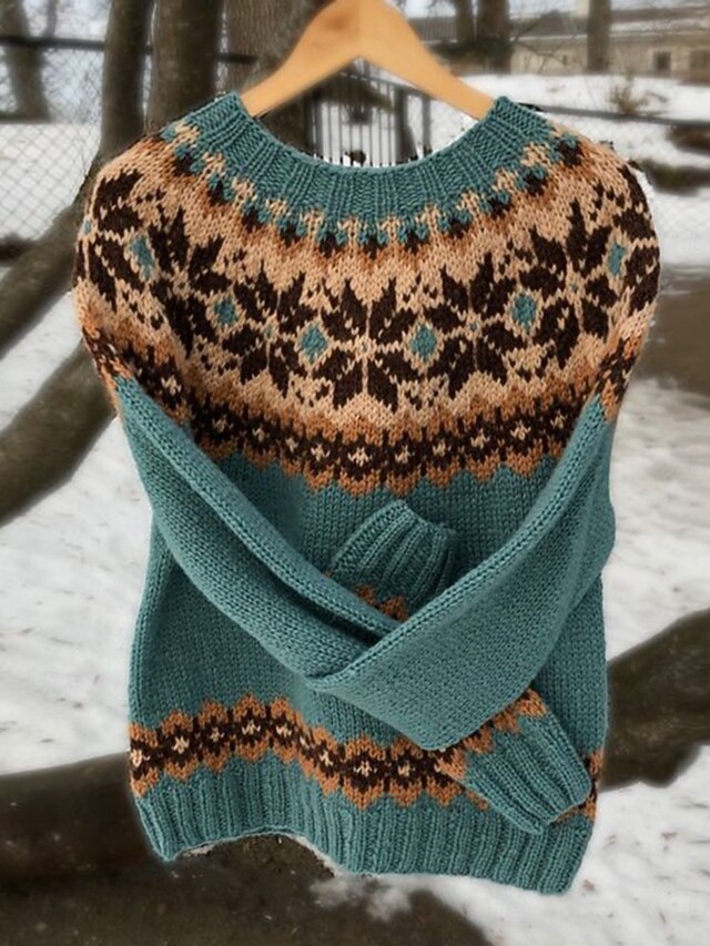 HOT ! Women's Sweater Casual Soft Geometric Ribbed Crew Neck Knitted Long Sleeve Regular Tops Knit Outdoor Daily Weekend Yellow Navy Blue Fall Winter