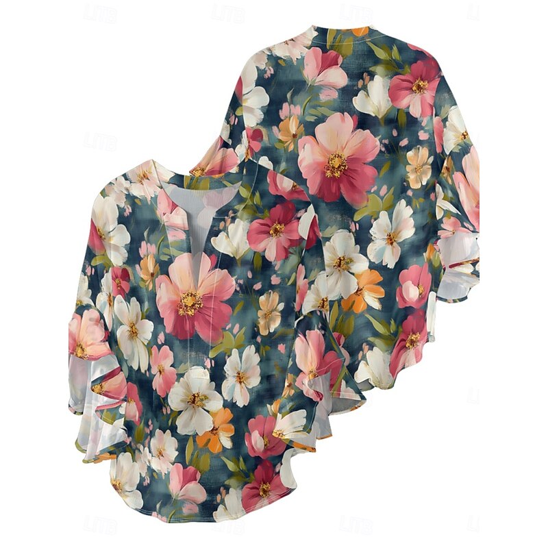 Highlights - Stay effortlessly stylish all summer long with this floral print ruffle top. - Made from high-quality polyester fabric, this top is both comfortable and fashionable. - Designed with a flattering V-neck neckline, this top is perfect for daily wear. - Elevate your wardrobe with this trendy and feminine piece that is sure to turn heads.