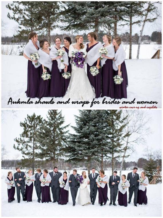 • Fur shawls and wraps are made of faux fur, satin and clasp.Bride cape is warm and soft enough for women cover up.