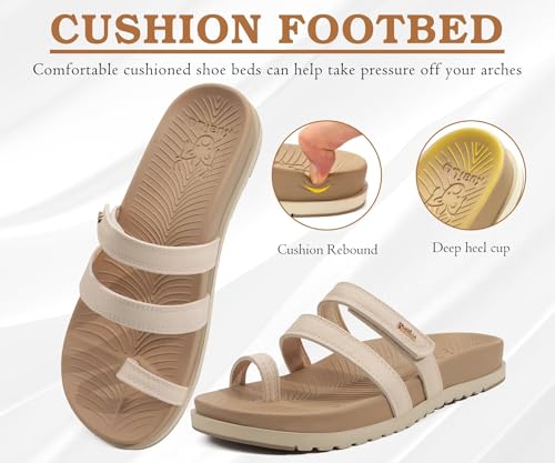 KuaiLu Womens Slides Sandals with Plantar Fasciitis Arch Support Fashion Comfort Adjustable Flat Sandals Ladies Lightweight Orthotic Slip on Sandals 4