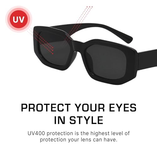 • 【STAY ON TREND】: Elevate any outfit with these stylish black sunglasses, perfect for any occasion from casual outings to formal events. Their bold, squared frame enhances facial features, making them a must-have accessory