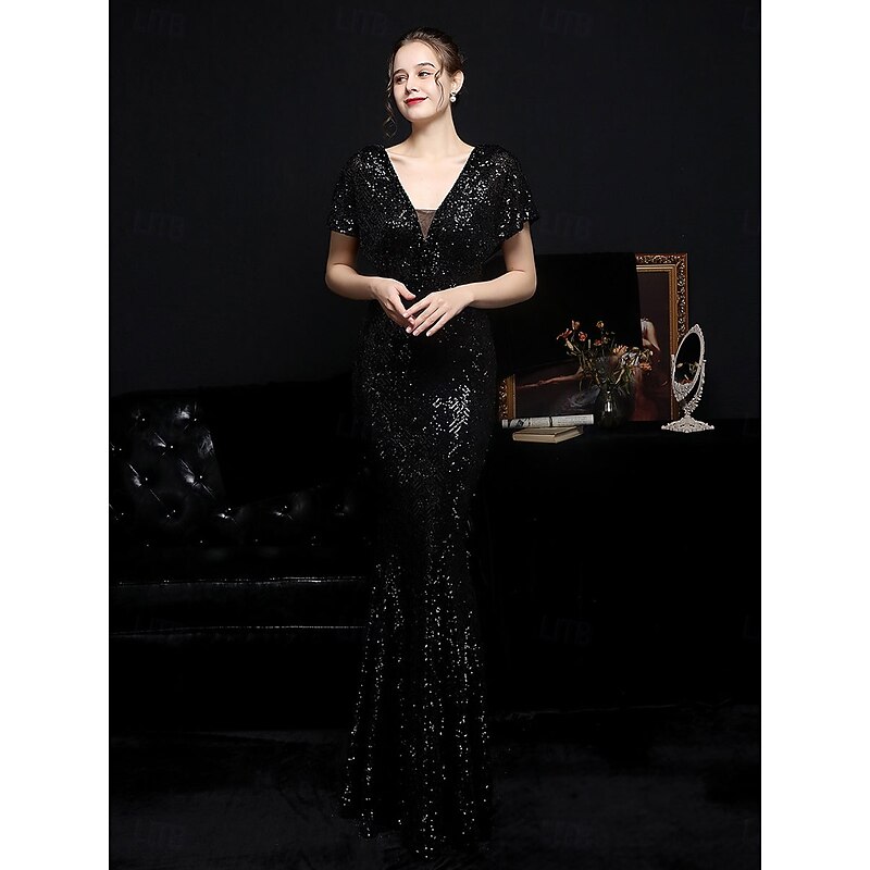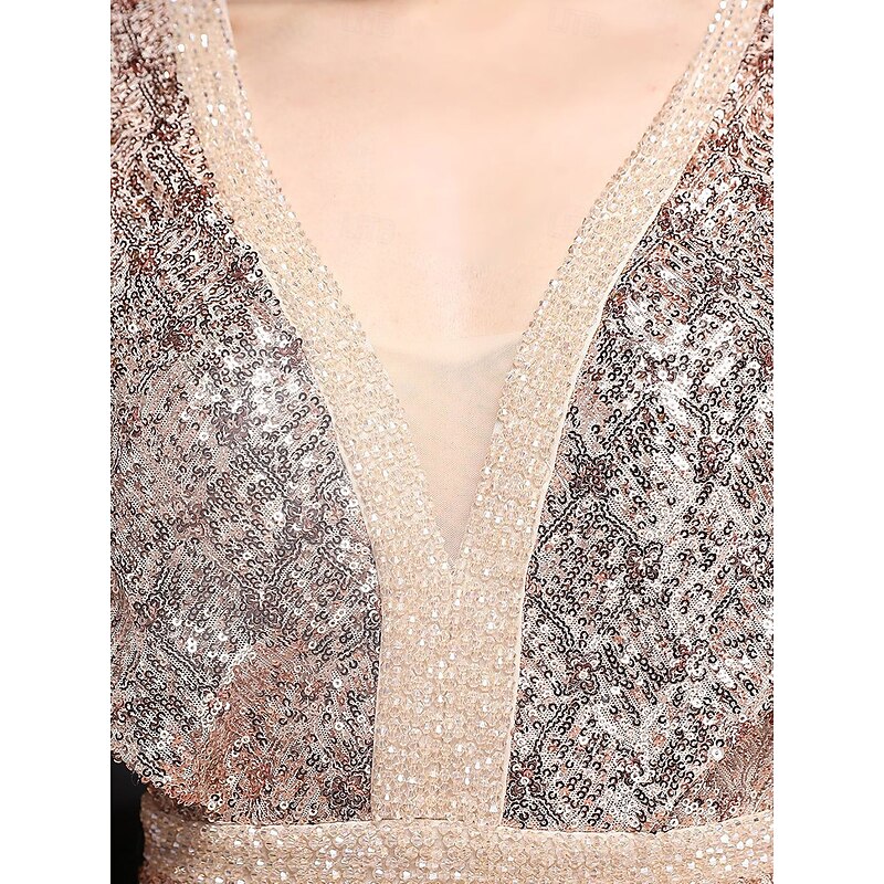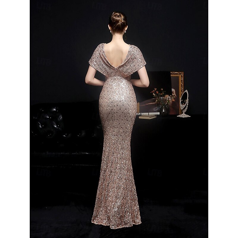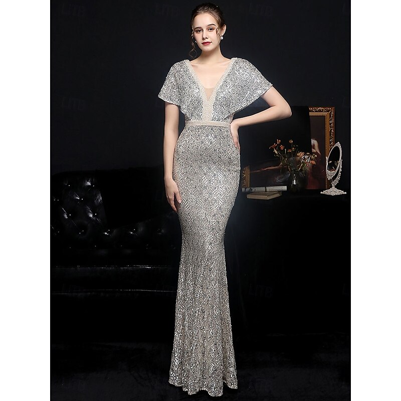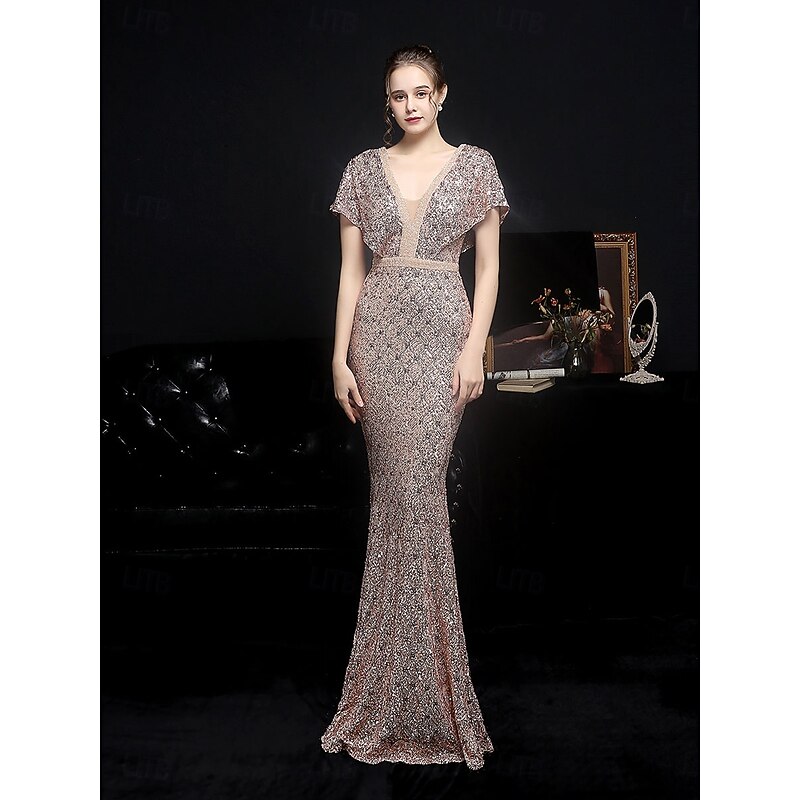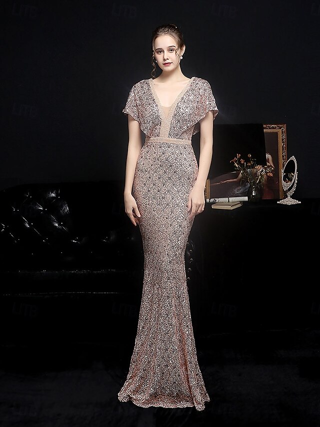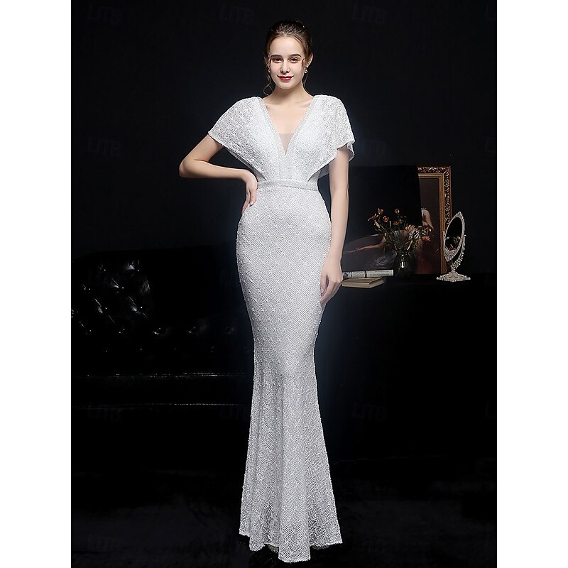 More information about Mermaid / Trumpet Quinceanera Dresses Elegant Dress Formal Wedding Floor Length Short Sleeve V Neck Sequined with Sequin