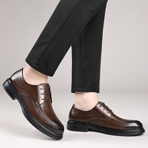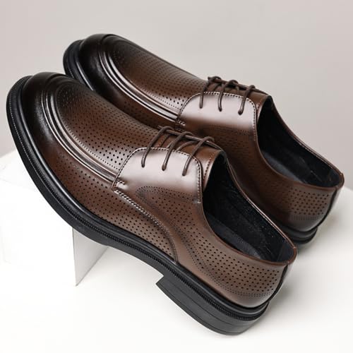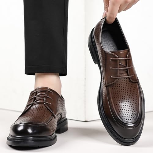 Men's Summer Hollow Breathable Leather Dress Lace-up Oxford Shoes Casual Non-Slip Walking Formal Wedding Business Wintips Flat Derby Shoes 6