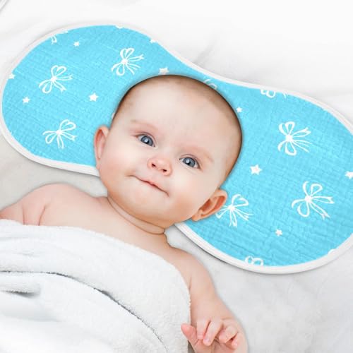 Baby Burp Cloths, Soft Absorbent Burping Cloths for Babies, Cotton Milk Spit Up Rags, Large Size for Newborns, Baby Boys and Girls (Blue Bow Pattern) 1