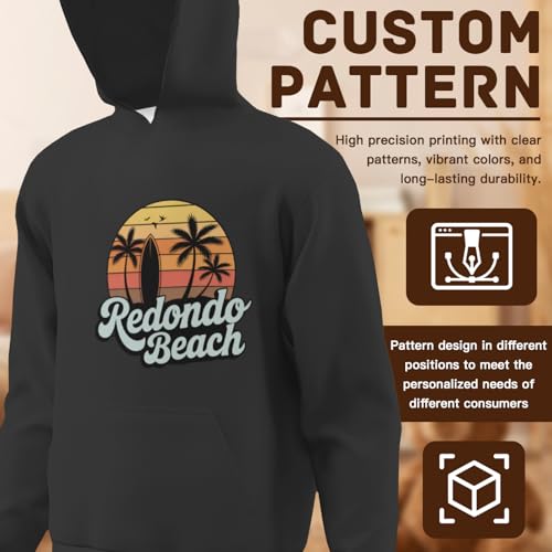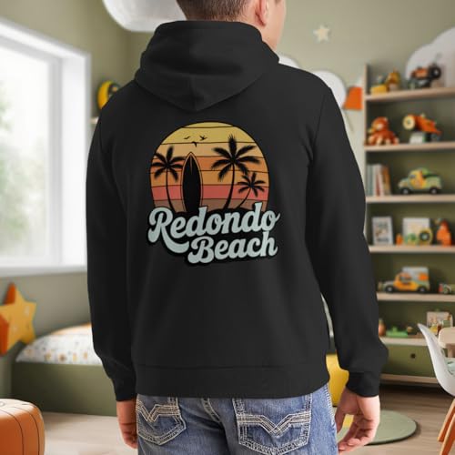 HOT ! Kids Retro Redondo Beach Surfing Beach Lovers Boys Girls Lightweight Kangaroo Pocket Hoodies