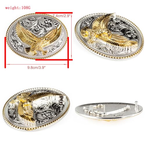 Men's Cowboy Western Gold Eagle Belts for Men, Leather Belt with 3D Soaring Eagle Animal Pattern Buckle 4